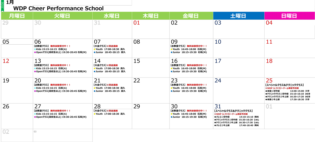▼ カレンダークリックすると1月度レッスン日程のPDFが開きます ▼