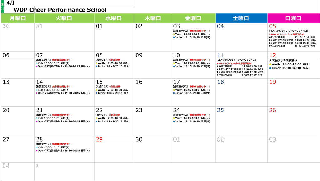 ▼ カレンダークリックすると4月度レッスン日程のPDFが開きます ▼